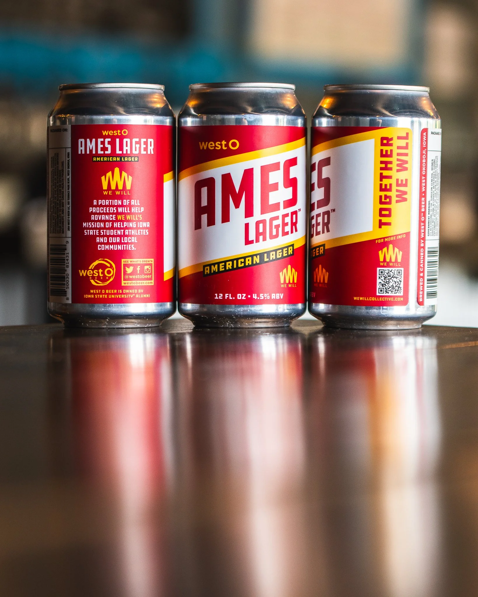 The We Will Collective is excited to partner with West O Beer on this American Lager with a light body, balanced flavor, hints of grain, subtle hops and a clean finish. A portion of all proceeds of AMES LAGER will advance WE WILL‘s mission of helping Iowa State University student-athletes and our local communities.
